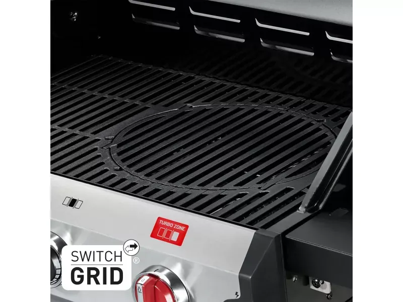 3 Edelstahlbrenner • 800 °C Turbo Zone • Switch Grid Gussrost • Doppelwandige Edelstahl-Garhaube • Warmhalterost