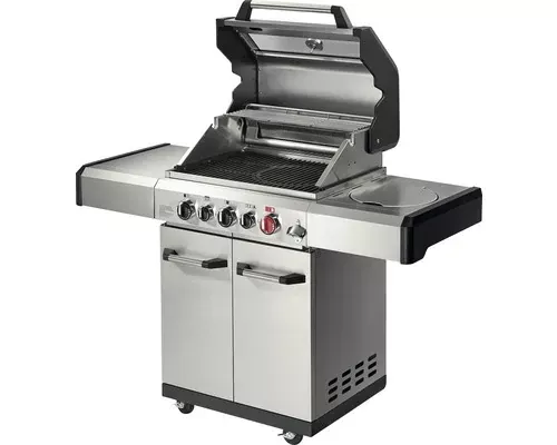 Premium-Gasgrill mit 3 Hauptbrennern, Seitenkocher & Rückbrenner • 18,6 kW Gesamtleistung • Edelstahlgrillrost • Turbo-Zone