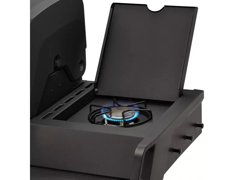 Der Monroe Pro 3 SIK Turbo SHADOW ist ein voll ausgestatteter Gasgrill für ambitionierte Grillmeister. Mit der 800 °C Turbo Zone™ gelingen Steaks perfekt, während die Heat Range™ für konstante Temperaturen von „low & slow“ bis „fast & hot“ sorgt. Der Switch Grid™ emaillierte Gussrost bietet vielfältige Zubereitungsmöglichkeiten. Ergänzt wird die Ausstattung durch einen Infrarot-Backburner und einen Seitenkocher für Beilagen.