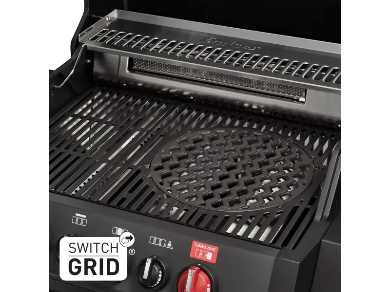 3 Edelstahlbrenner • 800 °C Turbo Zone™ • Heat Range™ • Switch Grid™ • Infrarot-Backburner • Seitenkocher • Simple Clean™