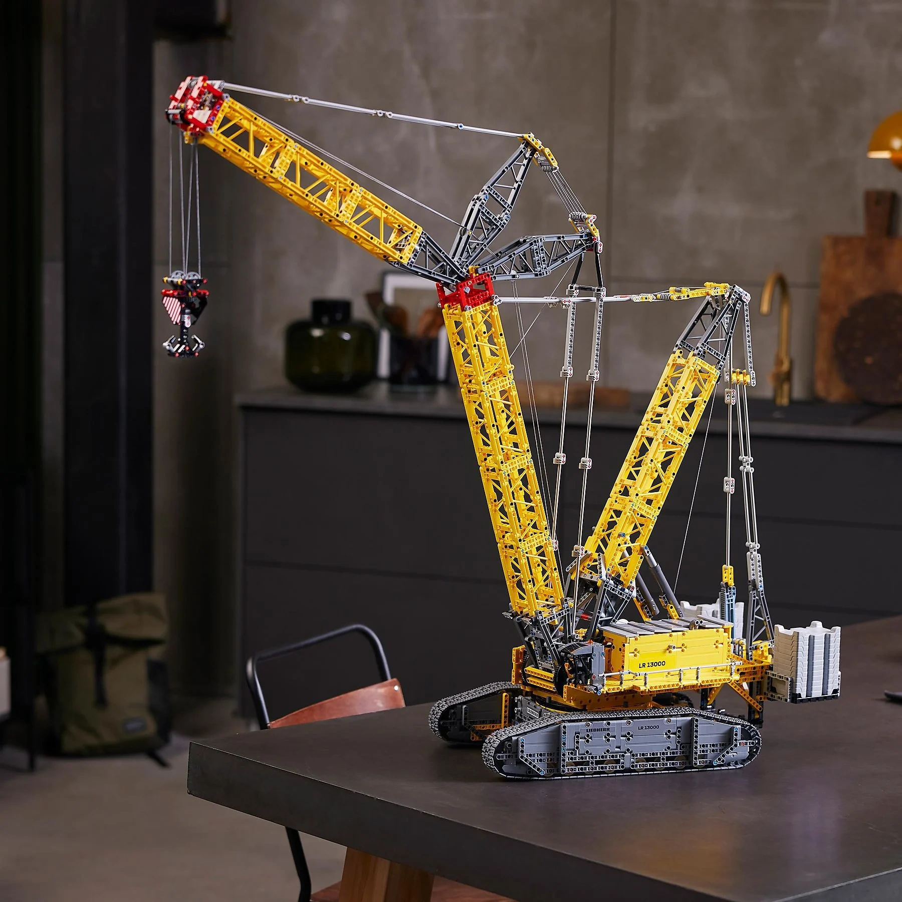 Mit dem LEGO Technic Liebherr LR 13000 Raupenkran (42146) entsteht eines der größten und detailreichsten Modelle der Serie. Mit über 100 cm Höhe, 110 cm Länge und zahlreichen realistischen Funktionen ist er eine Hommage an einen der stärksten Kräne der Welt.