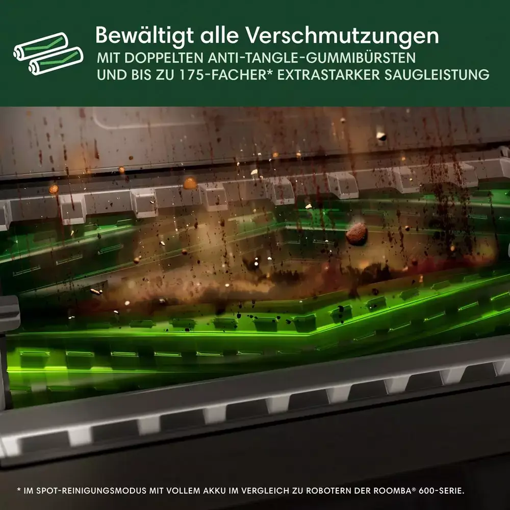 Saugleistung | 175-fache Saugkraft, doppelte Anti-Tangle-Gummibürsten |
