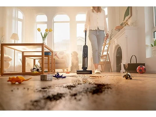 Mit separaten Frisch- (0,8 L) und Schmutzwassertanks (0,7 L) wischt der Sauger immer mit klarem Wasser. Das LED-Display mit Sprachansagen informiert in Echtzeit über Füllstände, Modi und Hinweise. Über die Tineco App steuerst du Einstellungen, bekommst Tipps und kannst sogar die Sprache der Sprachführung ändern. Per Knopfdruck reinigt sich das Gerät vollautomatisch in der 3-in-1-Dockingstation.