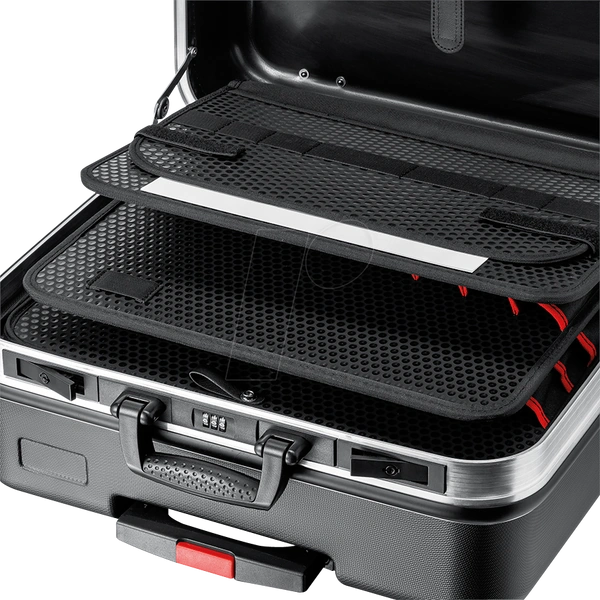 Der KNIPEX Big Basic Move ist ein strapazierfähiger, leerer Werkzeugkoffer für Profis, die Flexibilität und Organisation brauchen. Mit Skater-Rollen und integriertem Teleskopgriff lässt er sich komfortabel transportieren. Zwei Metall-Kippschlösser und ein Zahlencodeschloss sorgen für sichere Aufbewahrung.