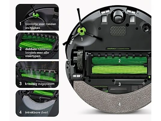 Highlights: Selbstanhebendes Wischpad, 4-Stufen-Reinigungssystem, DirtDetect® für hartnäckigen Schmutz, automatische Entleerung in die Clean Base®, regelmäßige Updates über iRobot OS, App- und Sprachsteuerung.